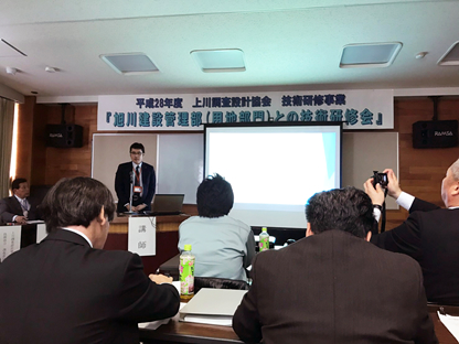 上川調査設計協会主催による、旭川建設管理部との用地測量技術交流会に、85名(会社数38社)が参加しました。