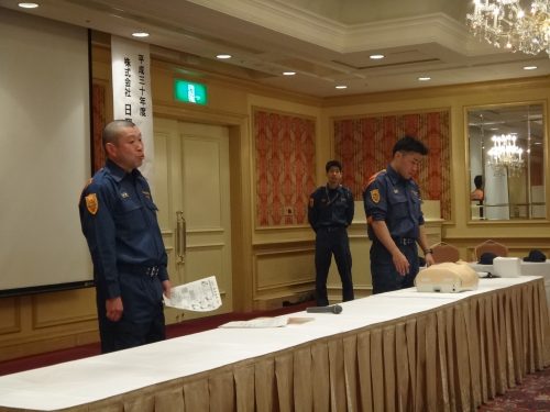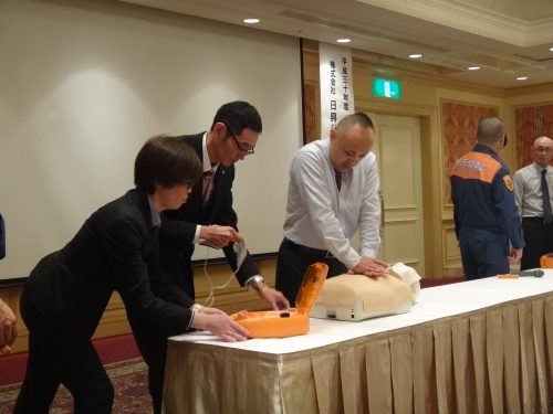 4/28、 事業会議前に1時間ほど旭川市南消防署の方より「心肺蘇生法及びAEDの使用方法について」の講話とAEDを使用した救急実技講習を体験しました。講話では急性心筋梗塞、脳卒中の初期症状はどのようなものか、発症してから病院受診までのタイムリミットを教えていただきました。また、救急実技講習では人形を使用して正しい胸骨圧迫、人口呼吸、AEDの使用方法を学びました。