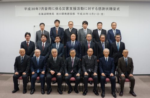 昨年の7月、北海道各地で豪雨による河川の氾濫や土砂災害が発生しました。この度、旭川地区の災害への応急対応、復旧作業、各種調査等に多くの団体等が協力したという事から、この度当社も旭川開発建設部長から感謝状をいただきました。