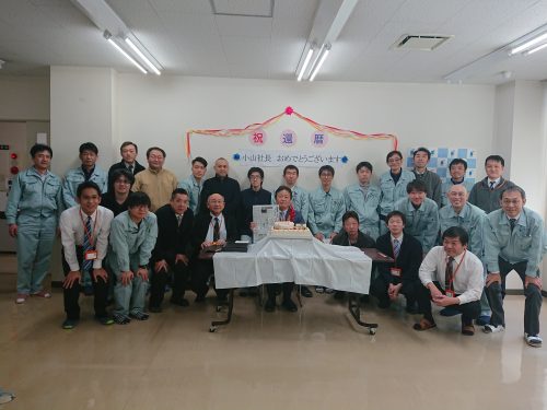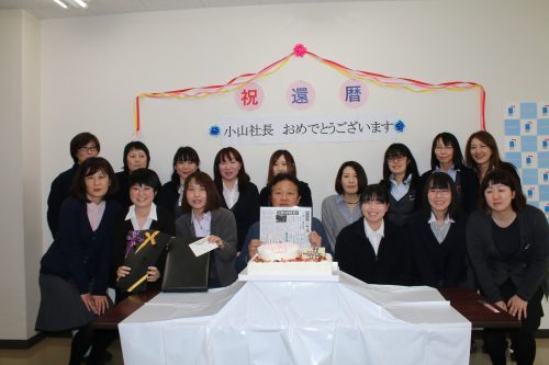 2/1午前中に少し時間をいただき社長の還暦お祝い(実は1日早いのですが…)をサプライズで開催しました。本当であれば「赤いちゃんちゃんこ」ですが代わりに手作りの赤いレイを用意。他にもケーキやネクタイ、そして社長が産まれた日の新聞をプレゼントしました。大変感激したと感想をいただけたのでサプライズ大成功!!でした。社長!これからも若々しく元気に社員一同を導いて下さい。本当におめでとうございました!!