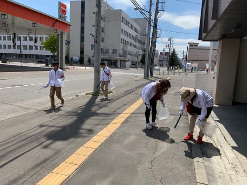 旭川市で毎年春と秋に「クリ-ン旭川運動」の一環として実施している「ゴミのポイ捨て禁止運動」に弊社から子供5人を含む40人が参加しました。過去最高の参加人数です!年々ごみも少なくなりましたが、ゴミのポイ捨て禁止の街頭啓発にはつながったと思います。ぽかぽか陽気の中で気持ちの良いボランティアでした。