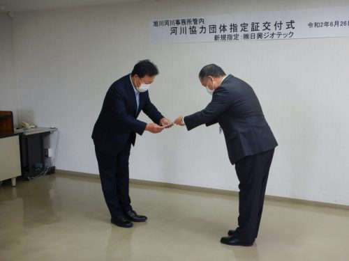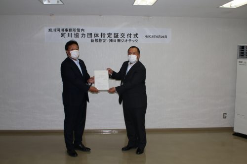 旭川開発建設部より河川協力団体に認定され、本日交付式がありました。弊社は旭川で3団体目の認定だそうです。これからも引き続き河川に恩返ししていきたいと思います。