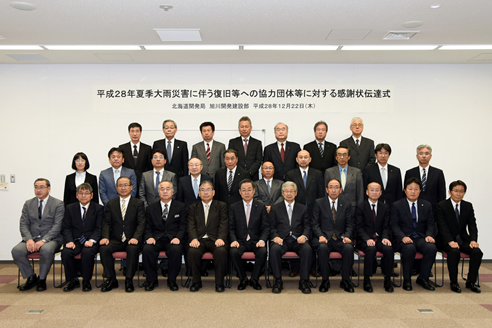 2016.12.22 表彰実績 平成28年夏季大雨災害に伴う復旧等への協力団体等に対する感謝状伝達式