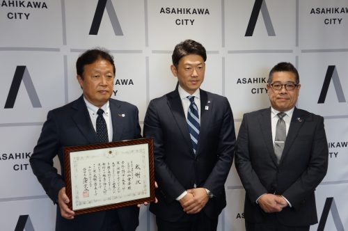 社内活動&NEWS カテゴリー すべて ニュース 表彰実績 地域貢献 社外研修(OffJT) 社内研修(OJT) 社内行事 その他 アーカイブ すべて 2025 2024 2023 2022 2021 2020 2019 2018 2017 2016 2015 2012 2025.4.15 地域貢献 感謝状贈呈式 日付:令和7年4月15日 場所:旭川市総合庁舎 内容:創立60周年記念事業の一環として、旭川市へ一般寄付をいたしました。その寄付に対し今津寛介市長より感謝状をいただきました。今後も地域への貢献に努め、地元企業としての強みを発揮するとともに、100年企業を目指して皆様のお役に立てるよう努力して参ります。