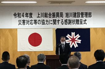 令和4年度 上川総合振興局 旭川建設管理部 災害対応等の協力に関する感謝状贈呈式 令和4年12月14日 主催:上川総合振興局 旭川建設管理部 多くの建設関連企業が、旭川地区の災害対応や、復旧作...
